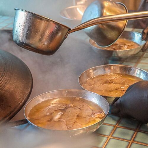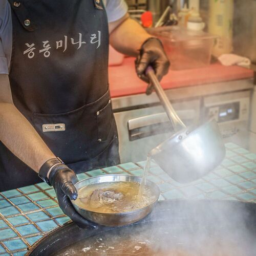 The gomtang at Neungdong Minari is topped with a pile of minari so tall that at a glance, it doesn’t look like a tang at all. The clear, clean broth is made from fresh hanwoo beef that was slaughtered on the day, which is topped with piquant minari that was grown in clear freshwater for added freshness. You should expect a wait, but you will think it is well worth it once you take your first bite.