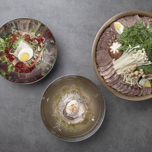 Taste the deeply savory broth and the nutty flavor of the noodles made from 100% buckwheat that intensifies the more you chew at Okdol Hyeonok. The restaurant is fairly new, but it has gained a solid following among Pyongyang naengmyeon connoisseurs. Some of their most popular dishes are mandu with a nuttiness that comes from plenty of tofu in the filling, eobok jaengban, and gajami shikhye. You can also have your favorite wine with your meal for a corkage fee. Enjoy the mild flavors with incredible depth.