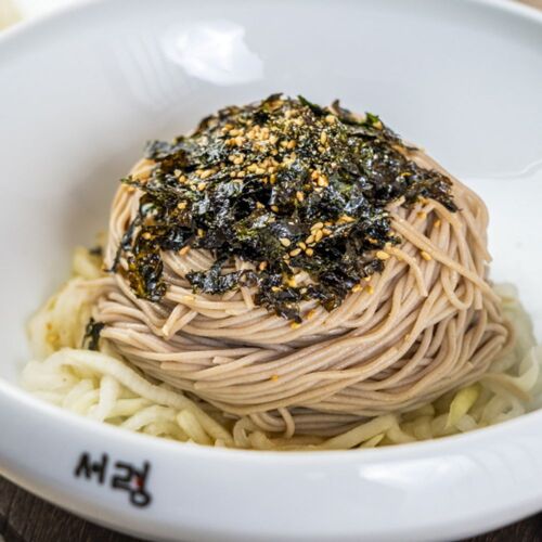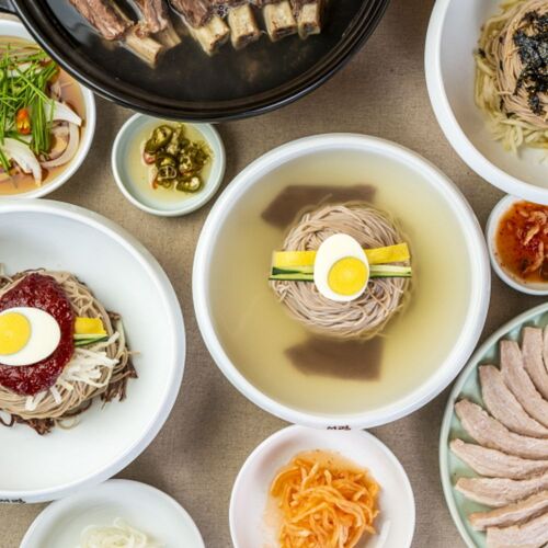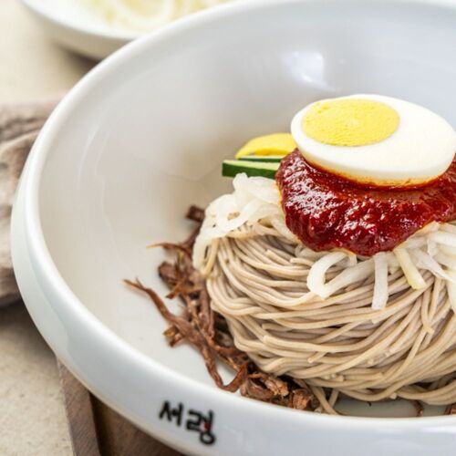 The couple, Lee Gyeong-hee and Jeong Jong-mun’s Seoryung, began its journey in Hongcheon, moved via Ganghwa, and finally settled in Namdaemun, Seoul. The restaurant has drawn foodies, especially those who appreciate noodle dishes, wherever it relocated. After putting down roots in Seoul, they secured more tables, created a comfortable dining space, and expanded their connection with customers by preparing noodles and broths with dedication and authenticity. All of their noodles are made purely from buckwheat which is lovingly sourced and prepared by noodle master chef Jeong. This is the secret to the fragrant buckwheat flavor that shines through in all their variations of noodle dishes, like the Seoryung noodles, bibim noodles, and perilla oil noodles. The mandu and jeyuk, made from the most tender part of the pork shoulder served alongside the neatly presented noodles, provide an even more satisfying experience.