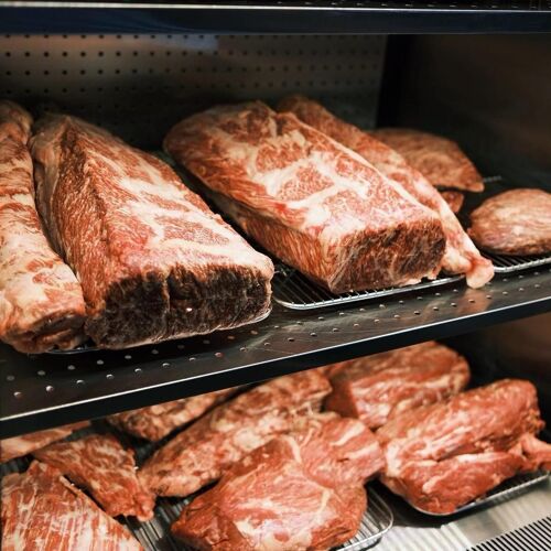 Chef's years-long study and mission to “create the best aged beef using the finest Korean meat” according to its own manual, the restaurant dry-ages the meat for 720 hours under varying conditions of temperature, humidity and oxygen for optimal fermentation in order to maximize its umami taste. This aged meat is then grilled on the table using the chef’s trademark method, which is known to best bring out the beef’s distinct flavor. Depending on the cuts, there are three different course meals available. The restaurant's prices, set affordably to help popularize the appeal of aged beef, add greatly to its attraction.