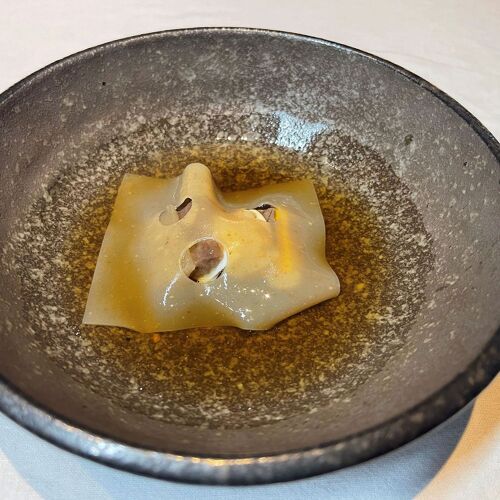 Chef-Owner Kim Do-yun is someone clearly passionate about ingredients, and he holds a particular fascination for noodles. The counter allows those lucky enough to have secured reservations a front-row seat to witness the dishes’ creation and hear the detailed explanations of the aging, fermenting and drying techniques that are used to add such depth of flavor and contrasting textures to the fish and meats that make up the multi-course set menu. This is cooking from a chef who never stops learning or developing his skills.