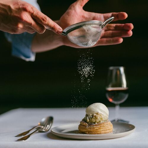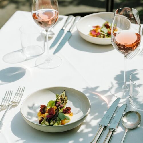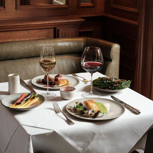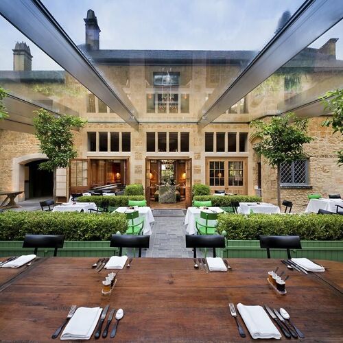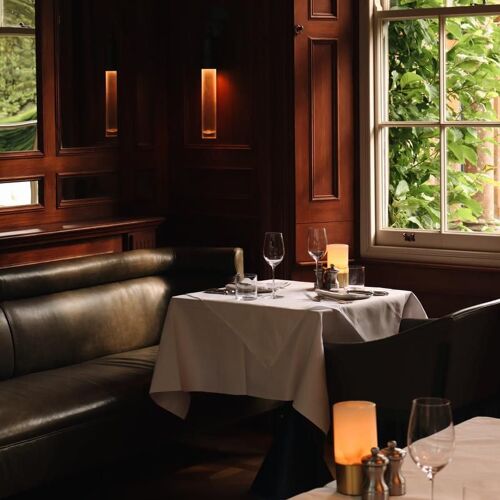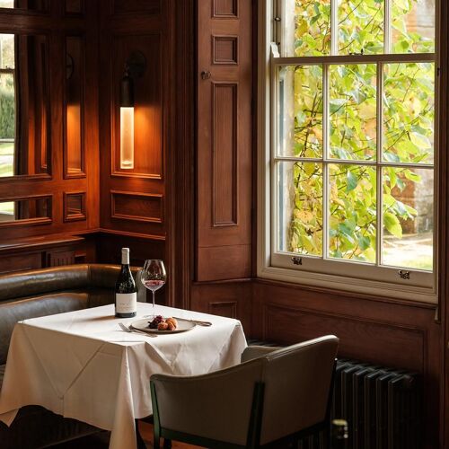 Set within the grounds of The Newt in Somerset, a striking Georgian estate that houses a number of mini-hotels, sits a beautiful mellow stone building. Within it is a stunning oak-panelled dining room, with a glass-covered courtyard and a laid-back feel. Inside a semi-open kitchen, the chefs skilfully handle seasonal local produce, be it lamb from the estate or seafood from the Dorset coast, with the wood-fired grill often used to good effect. The polite and efficient service ensures everything runs smoothly within this eminently elegant setting.