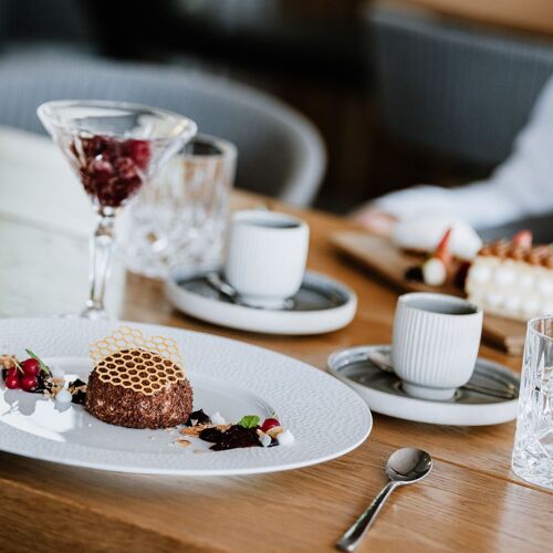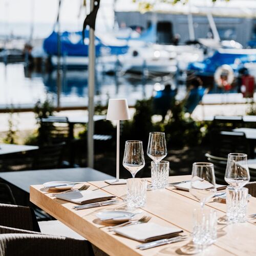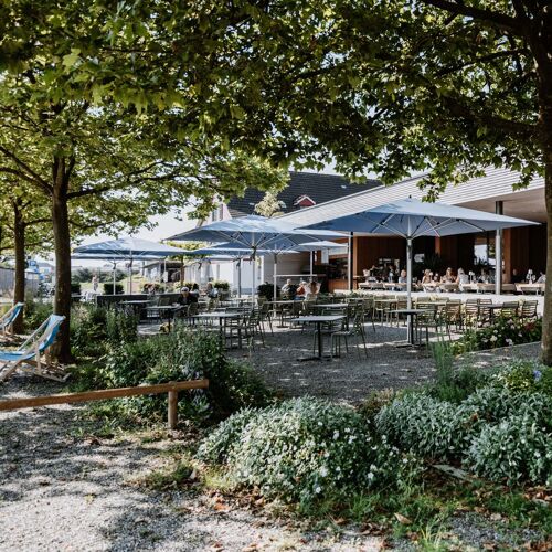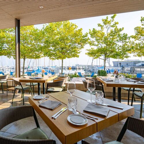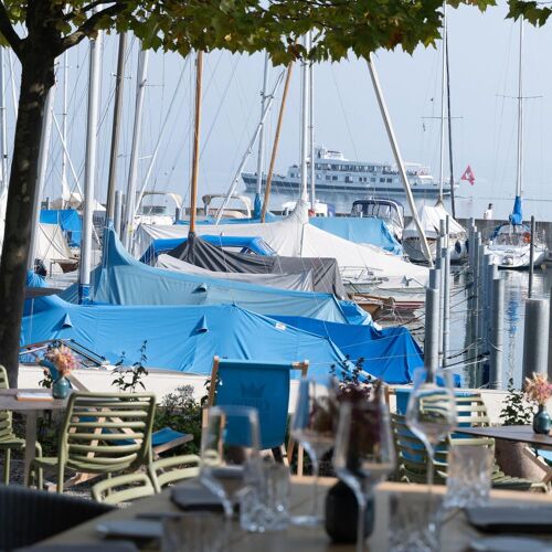Right by the lake, complete with a small harbour, this modern, low-rise building stands next to the traditional Krone restaurant after which it is named. Inside, an upscale contemporary decor with clean lines welcomes diners; outside, the terrace beckons. As for the food, the good à la carte selection of Mediterranean, French and regional dishes has a pronounced emphasis on local, seasonal ingredients, such as Thurgau rainbow trout and salmon from Lostallo. In addition, there are two three- or five-course set menus, one of which is vegan. The extensive wine list features over 160 labels. For a more casual approach, the separate "Krone Easy" self-service and takeaway concept operates throughout the milder seasons.
