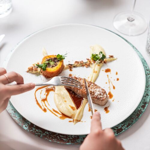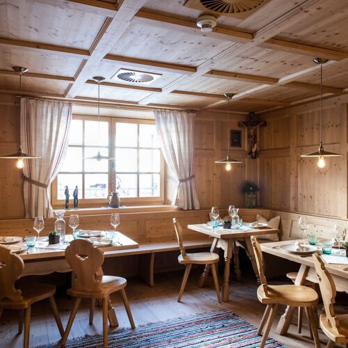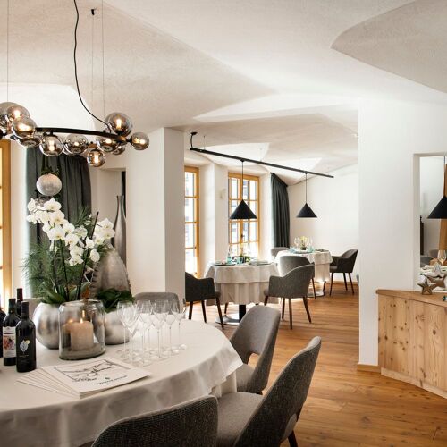 Young chef Maximilian Grüner's cuisine stays close to nature – his dishes take their cue from what the region and the seasons have to offer, and are served à la carte and in the form of a four- to six-course set menu. Among his appetising dishes are a potato and wild garlic soup served with baked egg and Jerusalem artichokes, and Schlutzkrapfen>/i> (Tyrolean ravioli) with cranberries, Gruyère and beetroot. The owner and her friendly, attentive team run the show front of house. Located in the eponymous hotel, which boasts a central location close to the ski slopes and attractive, cosy guestrooms, the restaurant has a lovely modern decor with an Alpine touch.