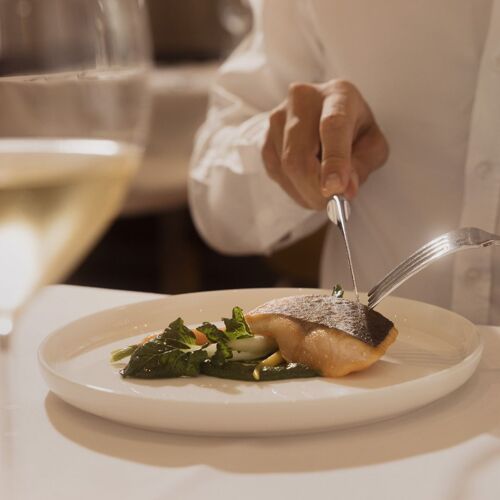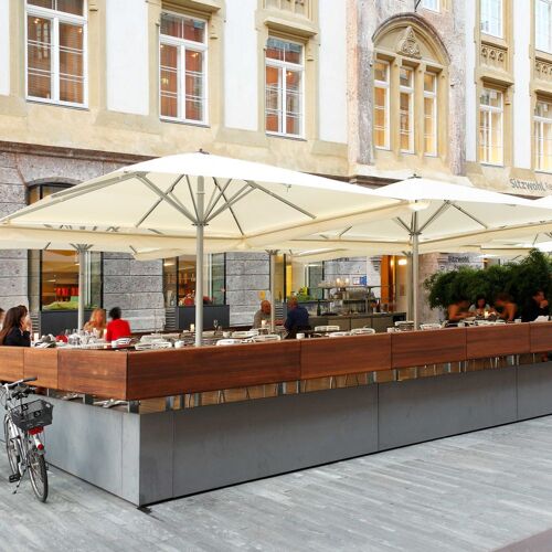 The smart, modern interior design of this place verges on the minimalist, creating an inviting and really stylish atmosphere. First and foremost, though, it is Elisabeth Geisler's cuisine that draws guests to this restaurant on the first floor of what was once the Gilmschule, whose listed façade forms an interesting contrast with the modern architecture of the Stadtforum. Aromatic dishes with a clear structure, such as turbot fillet with a beautifully spiced and reduced beurre blanc or crispy tarte Tatin of carrot, parsnip and celeriac are available as part of a set menu or à la carte. A good selection of wines and friendly, efficient service are also part of the experience. Diners may like to go to the bar and the Geislerei delicatessen on the ground floor.