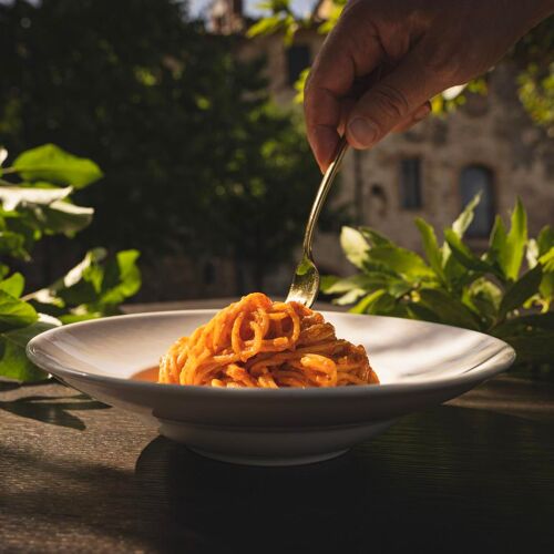 Situated along the Via Francigena near Monteriggioni the small medieval village of Abbadia Isola boasts a superb Romanesque church and a group of old buildings that once housed a monastery and its outbuildings. The Futura Osteria occupies the cellars where the monks once stored their wines, which now provides the setting for simple, delicious and resolutely seasonal Tuscan-inspired cuisine offering good value for money. The refined wine list, simple service and secluded terrace complete the picture.