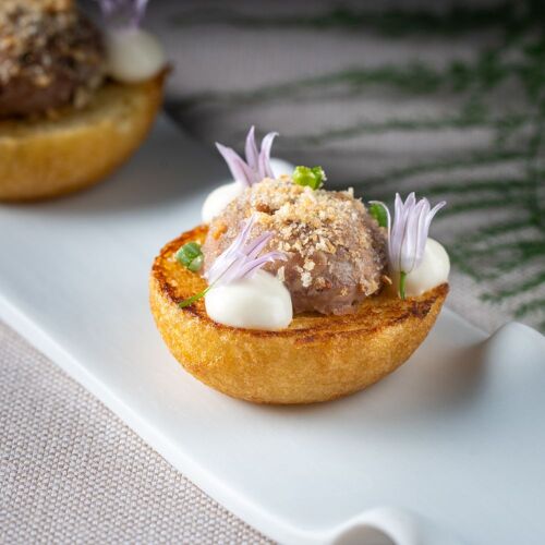 Inside the modern Badia Hill hotel, patron Marco Verginer offers two tasting menus: one focused on seasonality, the other inspired by his creativity, featuring ingredients such as Wagyu beef produced in Alto Adige. The pairings are flavorful and lively, with extensive use of vegetables, often from the home garden. The result is an excellent dining experience served in a contemporary setting surrounded by glass walls that offer splendid views of the surrounding landscape. The menu presents a succession of mountain territory references combined with Mediterranean and international touches in highly elaborate dishes.