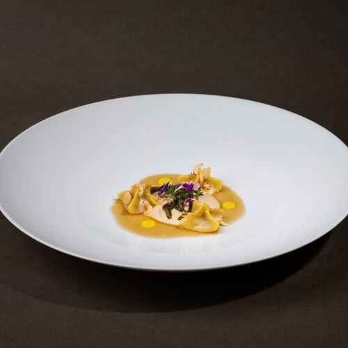 In beautiful Bressanone, the historic Hotel Elephant, housed in a building whose oldest section dates back to the late 15th century, is one of the city’s true icons. Managed by the same family since 1773, it is now in the hands of the eighth generation. In the intimate and exquisitely elegant dining room, with just four tables and the watchful eyes of the twelve apostles that, in the form of statuettes, observe you from the walls, Chef Mathias Bachmann presents a unique, extensive, and exclusive tasting menu. Drawing ingredients and techniques from around the world, with a special fondness for Japan, he reinterprets them with contemporary flair. Service is entrusted to Michael and Eleonora, whose expertise and innate warmth will also delight you with the incredible tale of the elephant that once passed through the city. In the warm season, aperitifs are served in the pleasant garden; during the colder months or inclement weather, they are offered in the elegant lounge, also on the first floor, just like the dining room.