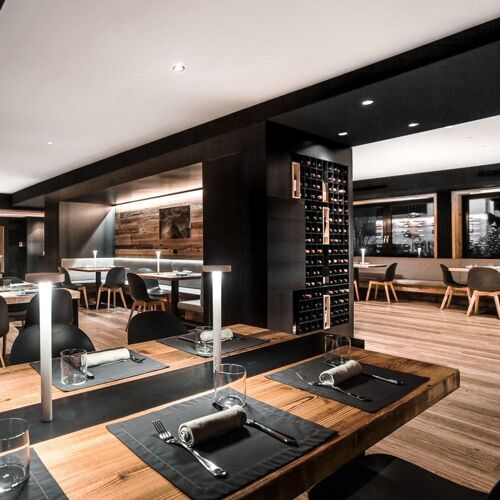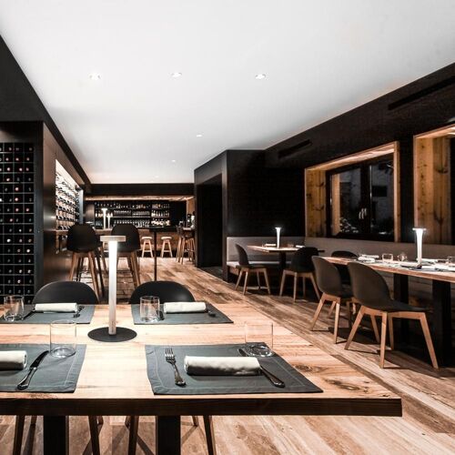 A minimalist-style restaurant featuring a wood decor, an extensive display of bottles, and some windows boasting partial yet splendid views of the Dolomites. The chef here prepares creative cuisine using local ingredients alongside produce sourced from other regions. The wine list includes a wide selection of natural wines.