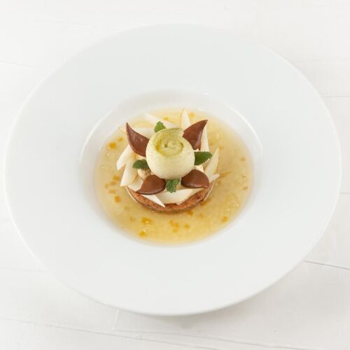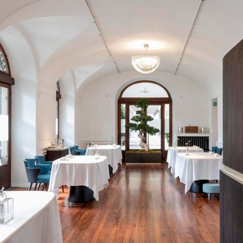 A historic city restaurant, overlooking Aosta's main square, has been brought back to life by the passion of young chef Paolo Griffa. It offers colourful, balanced and contemporary cuisine, available in 3, 5 or 7-course tasting menus. Always attentive to the harmony of flavours and chromatic beauty of dishes, the chef demonstrates a growing skill in handling vegetables, as evidenced by the vegetarian dishes always on the menu. The service is of an excellent standard and the wine offerings of great depth. Of course, as the name suggests, some spaces are dedicated to excellent coffee, equipped with an excellent pastry corner, making this place recommended for any time of the day, from breakfasts to aperitifs!