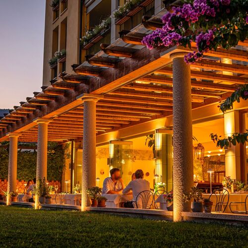 Situated just a stone’s throw from the lakefront, this elegant gourmet restaurant in the Regina Adelaide hotel boasts an attractive English-style garden, as well as a beautiful outdoor patio and stylish dining room. The two tasting menus served here (one of which is vegetarian) showcase the traditions of Lake Garda and its surrounding region with a creative twist using vegetables from the property’s own kitchen garden and a focus on seasonal ingredients. There’s also an extensive wine list.