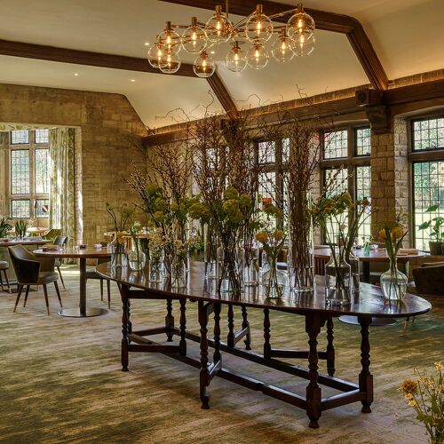 One of the last true country house hotels, this 14th-century manor sits within 365 acres of formal gardens and parkland in a picture-postcard village – and the immensely charming interior features characterful oak panelling and a host of cosy open-fired lounges. Quality produce from Anjou pigeon to Cornish brill plays a pivotal role in the menu, which results in a flavoursome blend of simple and premium ingredients. Dishes are precisely prepared and deliver refined, classic combinations with modern overtones. Luxurious bedrooms are split between the house and mews cottages.