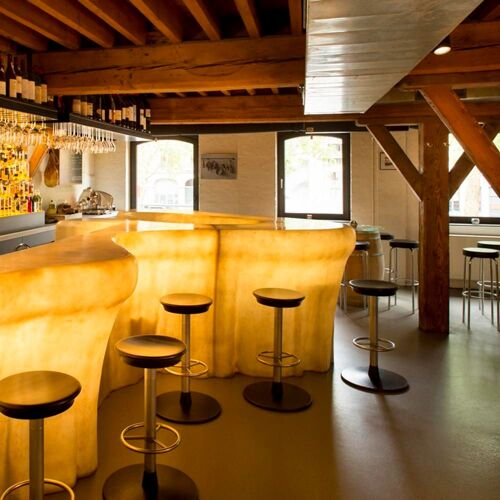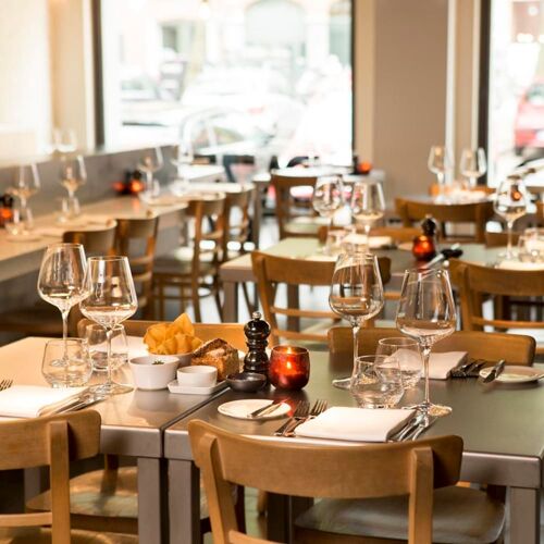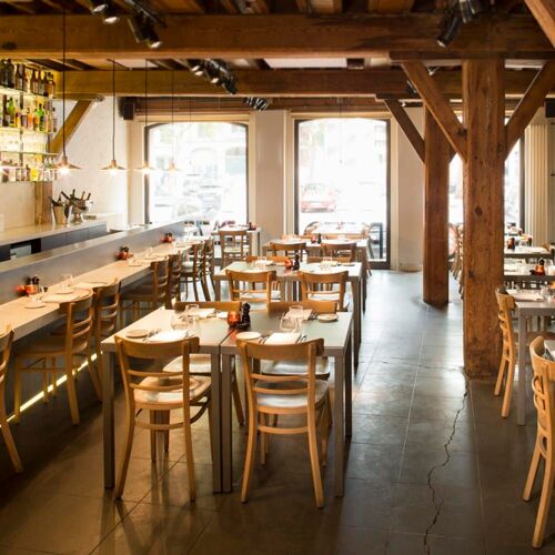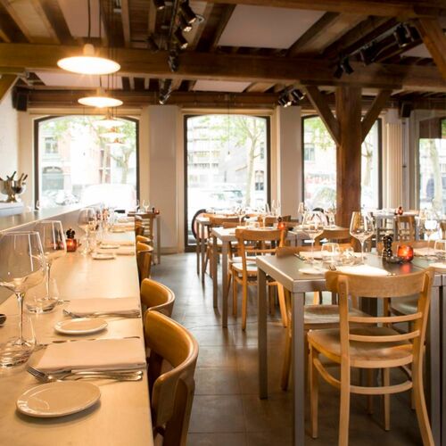 This jovial, casual eatery with a separate patio is well-known among foodies for its international score and superb wine list (wine bar above the restaurant). The chef avows a weakness for Italian recipes and truffles, without forgetting Asian and Middle Eastern notes. The extensive menu features dishes such as risotto al dente with black truffle, Korean-style gnocchi and seabass in mandarin and cardamon. The chef lures us back with his playful, unconventional approach to cooking.