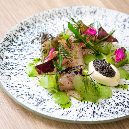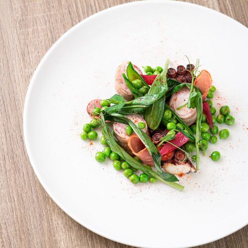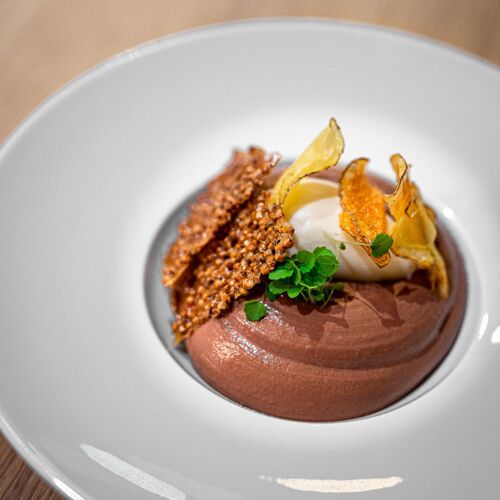 Modernity meets conviviality at this gourmet getaway nestled in the Lann Roz hotel in Carnac. The brightly decorated restaurant exudes elegance with its carefully laid tables, shelves filled with cookery books, and contemporary touches. Having trained at Le Bristol and at Taillevent, chef Stéphane Cosnier elevates Breton produce with creativity and precision, while also embracing exotic flavours. Open ravioli with langoustines and artichokes in barigoule, line-caught red mullet with shellfish and green curry, or a delicate bourdaloue tart given a modern twist with strawberries: each plate tells its own delicious story.