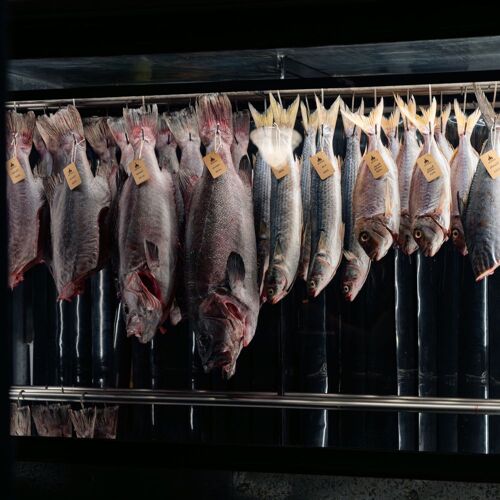 We particularly enjoy variety and a sense of personality, hence our attraction to this relaxed industrial-style restaurant where everything revolves around informally, yet meticulously prepared fish, including tapas. Located in the heart of the Colegiales district, the overall feel here is original and fun. The decor features a large steel scaffolding-style bar counter (the tables are similar in design), colourful maritime-inspired murals and, in the centre of the room, a maturing cabinet that aims to add more flavour and new textures to some of the ingredients used here (bass, mullet, bream, bluefish, pollack, palometa etc). One of the most popular and successful starters here is the Pan Bao with panko prawns, wasabi mayo and grape or cucumber pickle, although the fresh fish of the day is another worthwhile option. This successful restaurant is particularly popular, so it is essential to book well ahead in order to secure a table.
