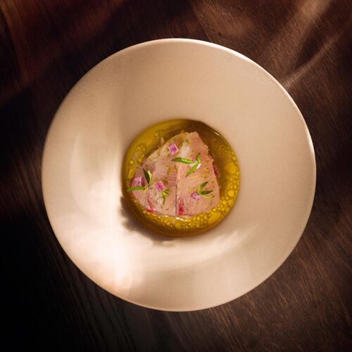 Lars Aukema is a chef who does not need top-of-the-range ingredients to create exciting dishes. Having worked under the tutelage of Jonnie Boer for a long time, he has now proven himself to be a dab hand at showcasing flavours from the region and around the globe. He combines, for instance, yellowtail tartare with crunchy kohlrabi, topped with yellowtail sashimi and dusted with black cardamom and kaffir lime zest. Lime gel, marinated green strawberry and a fermented kohlrabi broth add the finishing touches to this understated dish. This is a subtle flavour combination you won't forget. This is a chef who possesses exceptional technique and has the audacity to create bold flavour combinations.