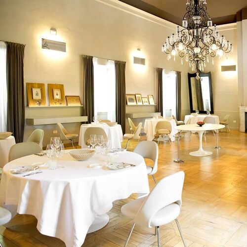 The owner-chef’s Calabrian origins are evident on a menu that combines Mediterranean cuisine (including fish and seafood) with Piedmontese specialities and showcases beautifully presented dishes prepared using contemporary techniques. This small modern restaurant situated near Perno castle is also open at lunchtime (by prior reservation only).