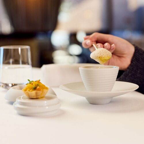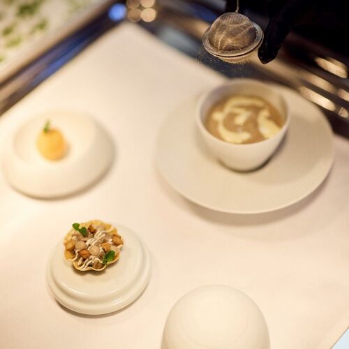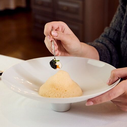 It’s well worth travelling the 60-odd kilometres from the centre of Belgrade to get to this fascinating property serving fine cuisine and excellent wines. The restaurant is situated within the Atelje Vina Šapat winery and is surrounded by 12 hectares of vines. The dining room is elegant, classic and contemporary in style, with large windows that allow guests to enjoy extensive views of the peaceful Danube, the vineyards and the verdant countryside all around. Talented chef Nikola Stojaković brilliantly merges the refined techniques he honed in some of France’s top restaurants with the finest Serbian ingredients, including local meats and freshwater fish. His creativity shines through in a distinctive approach: each savoury dish is presented in three successive variations, each one a unique interpretation of the same main ingredient. For those willing to trade a view of the Danube for a front-row seat to the culinary action, a special table positioned directly in front of the kitchen provides a captivating front-row experience. The wine list is truly remarkable, featuring over 500 labels—from the estate’s own vintages to outstanding selections from across the globe. A truly exceptional dining experience!