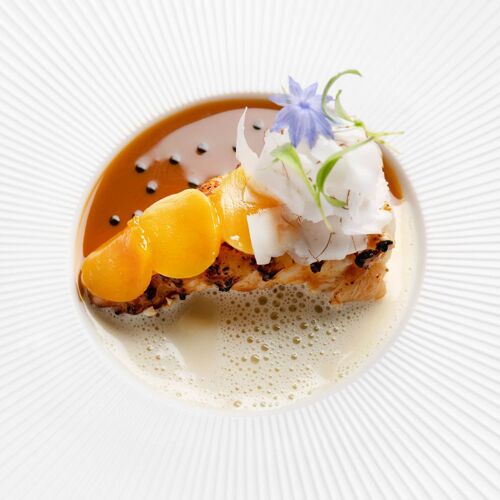 Reto Brändli has taken over the kitchen at the hotel's gourmet restaurant, Giardino, from Rolf Fliegauf. With his pleasantly minimalist, technically sophisticated and refined cuisine, he is continuing the restaurant's success. The fact that only the finest ingredients are used is evident not least in the South African lobster with mango, coconut and kaffir lime. The highly skilled, courteous and stylish service is also impressive. Add to this the elegant ambience – a decorative detail is the wall adorned with countless rose petals. The terrace overlooking the hotel garden is also beautiful.