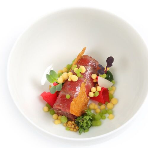 In the chic fine dining restaurant of the luxurious Widder boutique hotel, chef Stefan Heilemann and his team skilfully bridge the gap between classic and modern cuisine, drawing on international influences. Thoughtful preparation and precise technique go into the elegant dishes. The set menu starts as it means to go on: a veritable explosion of flavours in the form of amuse-bouches such as fluffy bao bun filled with pulled goulash or tender, delicately sweet Algarve prawns served with a refined cauliflower foam and crispy herbs. The culinary delights continue in the form of a superb langoustine, perfectly cooked to a translucent finish and paired with tom yam, peanut and kaffir lime – a dish in which the chef showcases his knack for combining sweet, sour and spicy notes. Home-grown produce is also used. The two set menus, one of which is vegetarian, each comprise four to six courses. You can also choose from the chef's classics on the "Supplements" menu. The highly adept waitstaff impress with their pleasingly relaxed approach. Tip: Book the Chef's Table! Widder Bar is one floor below.