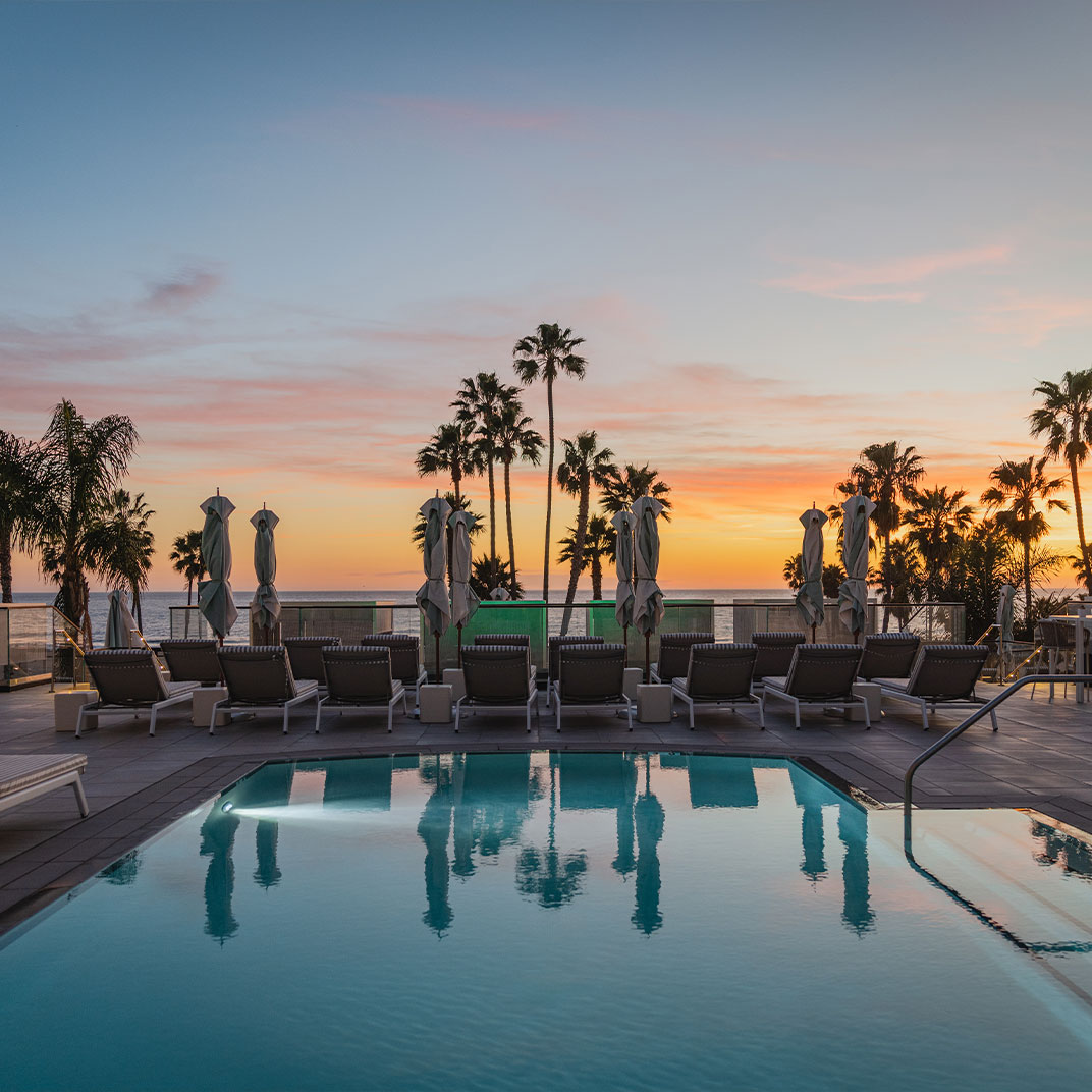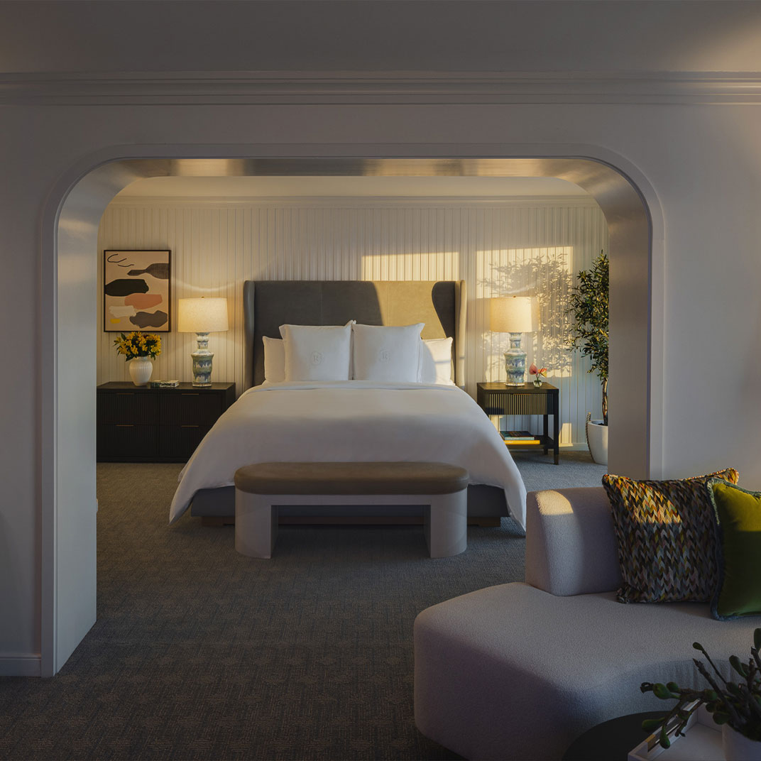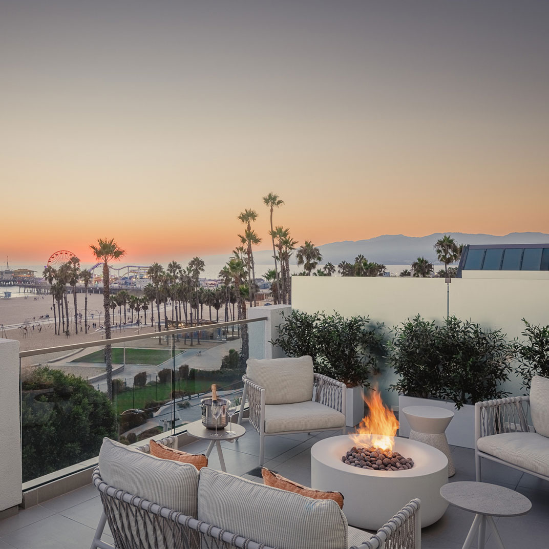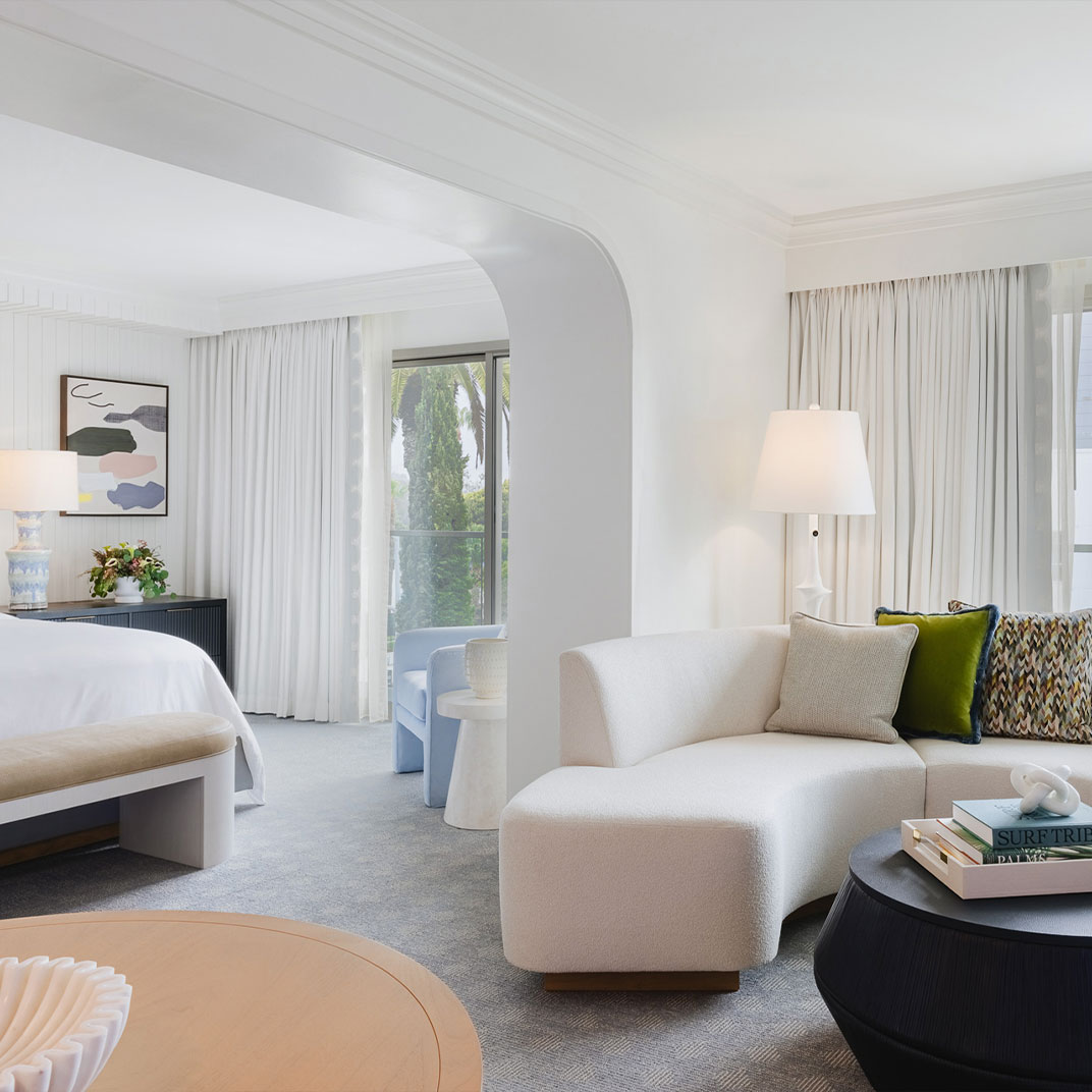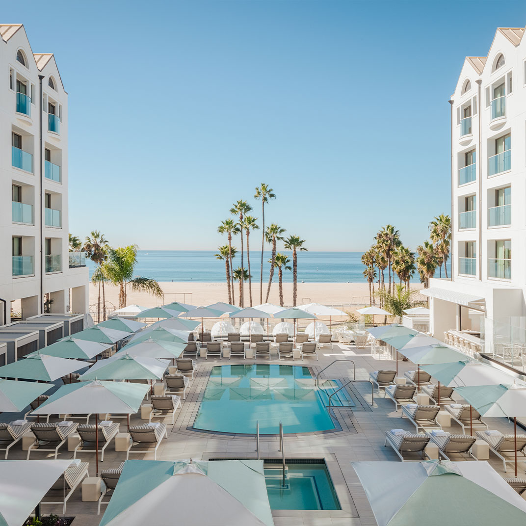 Regent Santa Monica Beach brings a new level of laid-back luxury to Ocean Avenue. Interiors reflect the coastal setting with a soft palette, breezy silhouettes, and thoughtful in-room extras like marble soaking tubs, yoga mats, and Dyson hairdryers. Floor-to-ceiling windows frame sweeping views of the Pacific, while the expansive pool deck and light-filled lobby invite guests to linger. Ideally positioned for exploring Santa Monica and beyond, with direct access to the beach path and the iconic pier just steps away.
