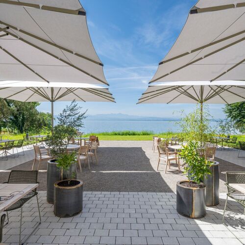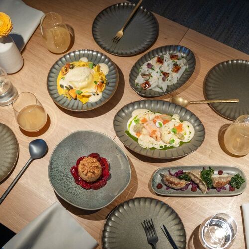Following stints at some prestigious restaurants, Philipp Heid has been head chef at the Pinus restaurant at Seegut Zeppelin hotel since May 2024. Here, he has created a laid-back sharing concept featuring modern and light dishes. The menu is predominantly vegetarian, but there are also meat options. Feel free to order as you please – there's no traditional menu progression, and sharing is optional. The dishes are arranged according to their flavour profiles: fruity, spicy, with roasted notes, earthy, plant-forward… In addition to fine wines, they have a wide range of non-alcoholic alternatives. The decor is modern upscale, but the atmosphere is comfortably relaxed. There is also a terrace overlooking the lake and the Alps.