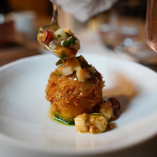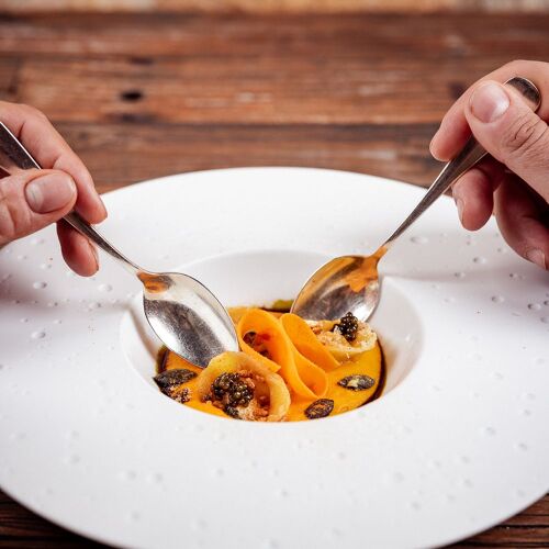 Not only is Schloss Filseck a museum, cultural centre and venue for events, it is also a hotspot for foodies! The decor is classic in style, incorporating modern touches, A wooden ceiling and quarry-stone walls add an old-fashioned, rustic charm to proceedings. There is also a wonderful terrace in the interior courtyard. Head chef Daniele Corona clearly draws much of his inspiration from Italy and elsewhere in the Mediterranean, creating highly ambitious and multi-faceted dishes such as "Toscana" (Chianina beef, rocket, bagnetto verde). In the evening, the fine dining set menu also comes in a vegetarian version. There is a well-stocked wine list, and the staff provide astute recommendations. The concept is completely different at lunchtime: the "mezzogiorno" lunch deal is simpler and inexpensive. The ree shuttle service within a 20km radius of the castle is really handy.