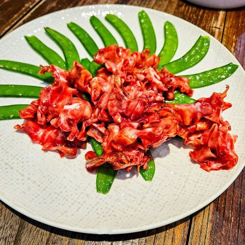 This restaurant, which doubles as an art gallery, is adorned in the owner’s art collection. In the kitchen, the young chef from Putian adds a new twist to Fujian fare. Large mactra clams, blanched in boiling chicken stock for 10 seconds by the table, impress with deep umami, perfect cooking and crisp texture. Traditional sliced conch in wine lees sauce is given a new spin, with the red vinasse exuding a unique fragrance.