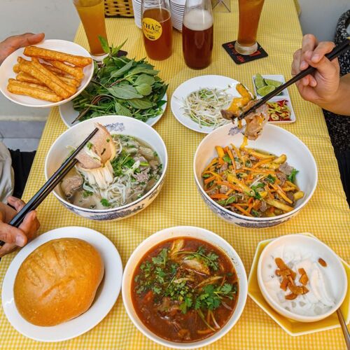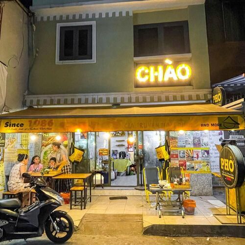 Despite expanding, Phở Chào has lost none of street-side charm. Choose between a rich three-day beef-bone stock and chicken broth. Top dishes include phở bắp hoa with medium-rare beef, crispy fried chicken gà tôm mắm sốt, and phở tine – a fusion of beef noodle soup, French fries and cheese.