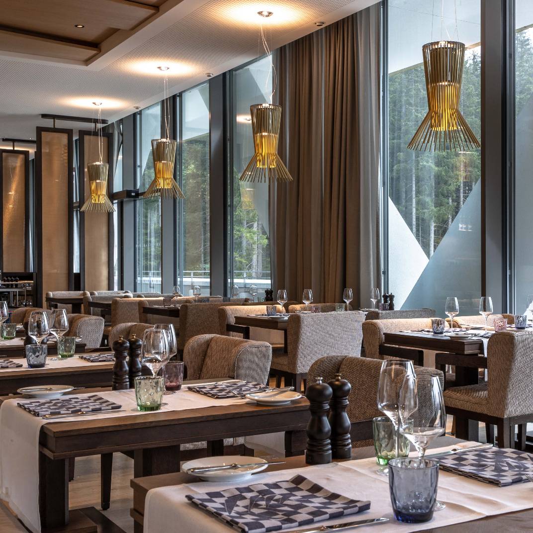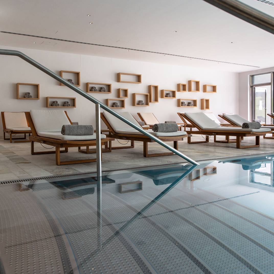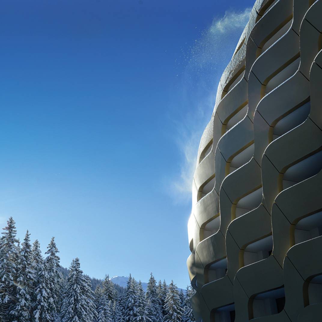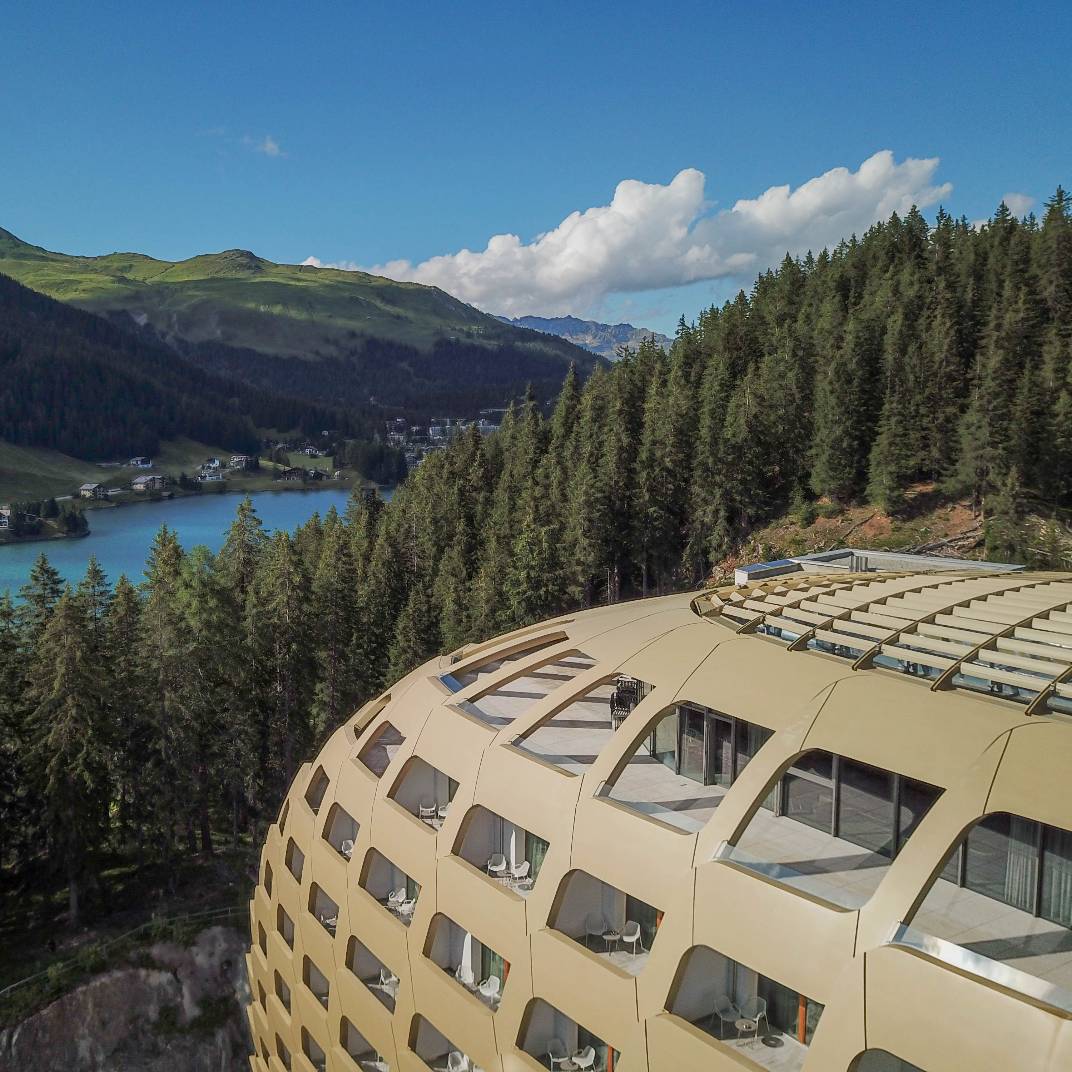 Most Alpine retreats in Europe welcome guests with their traditional cozy chalet style, but the AlpenGold Hotel Davos dares to be different. The hotel’s futuristic oval gold exterior makes a striking impression sitting above Lake Davos, and while the rooms inside aren’t lined in the usual Alpine woods, they’re no less cocooning with soft shades and tactile furnishings. The modern design also means they come with floor-to-ceiling and wraparound windows to really show off the spectacular view. There’s six restaurants and bars, including the Cheese Factory, which serves traditional raclette and fondue in the untraditional setting of a glass tube on the rooftop, the vegetarian restaurant atelier VERT, and there’s the Nuts & Co Lounge Bar for casual dinner and drinks. The spa offering is equally extensive, a 1,200 m2 space in collaboration with the Swiss beauty brand Nescens, and fully kitted out with a heated indoor and outdoor pool, a gym and yoga room, saunas and steam rooms, and a collection of Spa Nescens and Alpine Spa suites if you’re looking for privacy.
