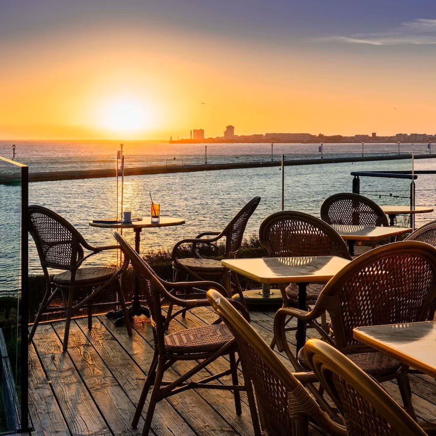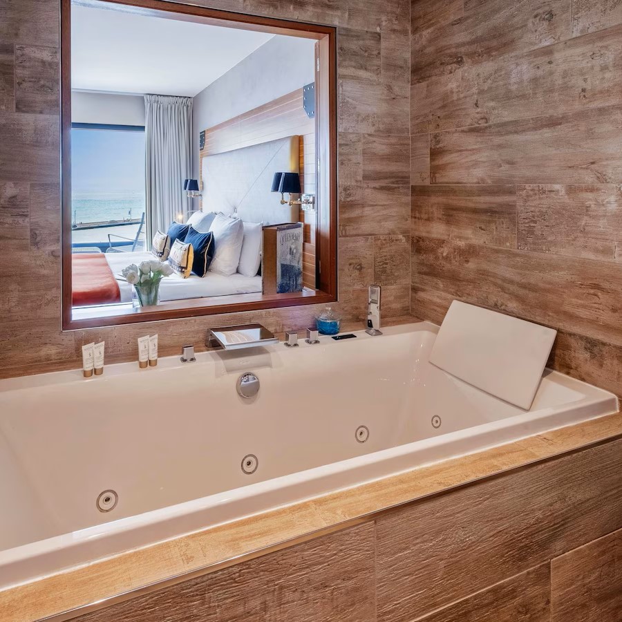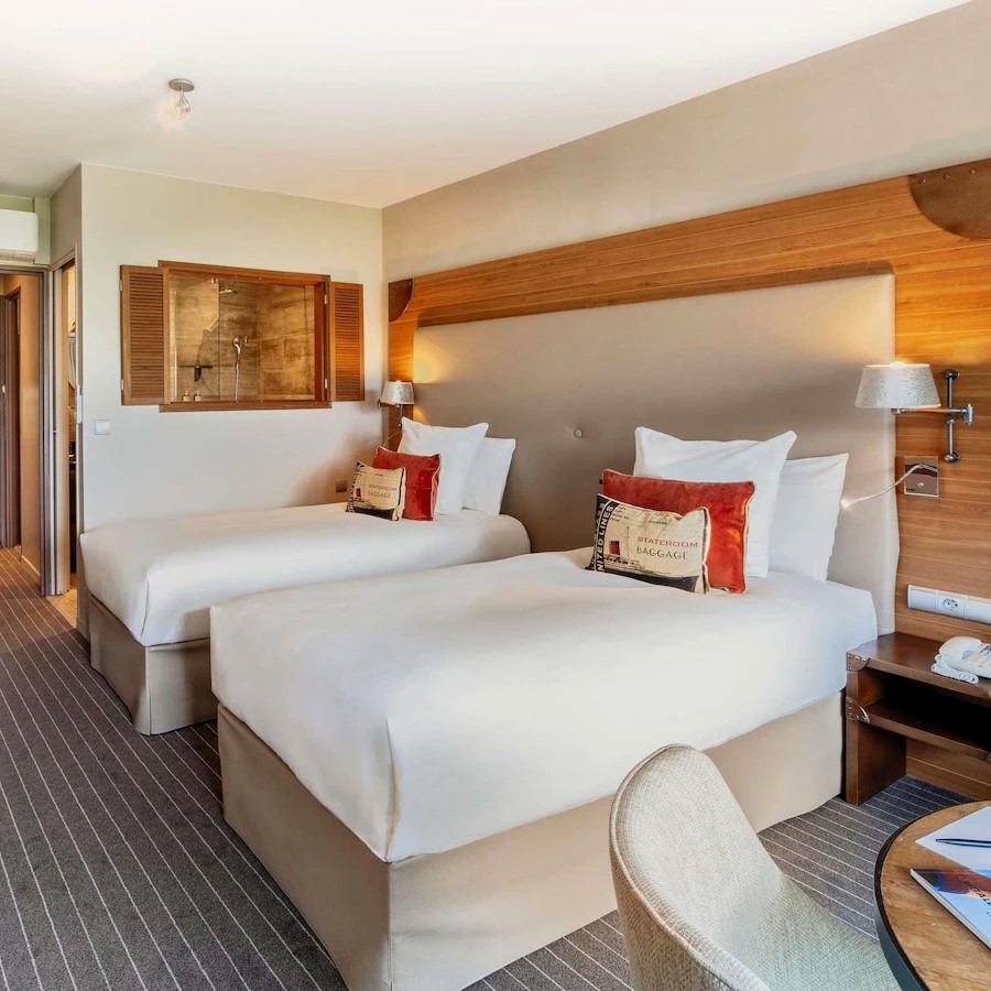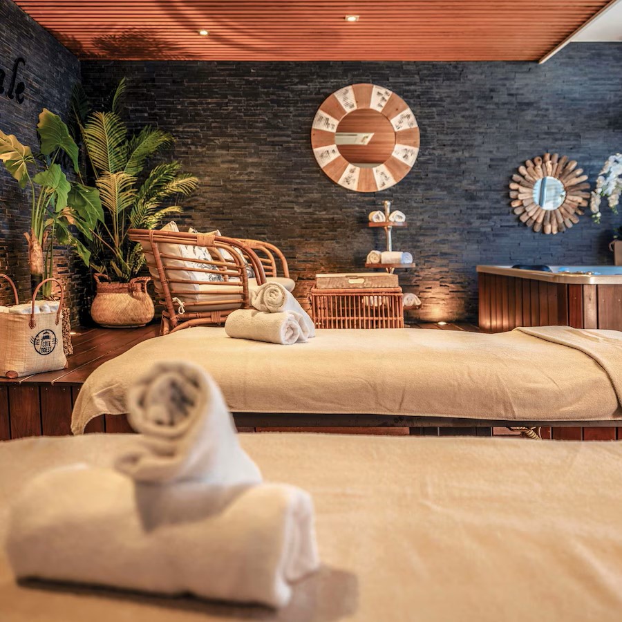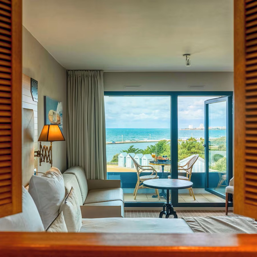 Côte Ouest Thalasso doesn’t just look across the Atlantic Ocean, it feels like you might be sailing across it with its 1930s ocean liner-inspired design. Rooms and suites take their cues from ocean liner cabins and come with a mix of bay windows and balconies to highlight the views of either the water or surrounding forest. The theme continues in Bar Cote Ouest, furnished with leather-clad armchairs and nautical touches, while restaurant Cote Ouest naturally serves a seafood-driven menu that changes according to daily catches from the local market. It’s the Thalasso center that’s the highlight though, a vast 1500 sqm wellness space specialized in thalassotherapy and fully equipped with heated indoor and outdoor seawater pools, Jacuzzis, numerous treatment rooms, including three overlooking the ocean, plus a gym, hammam, sauna, and aromatherapy room.