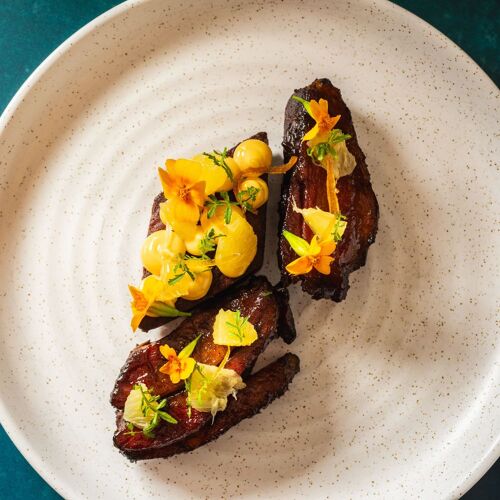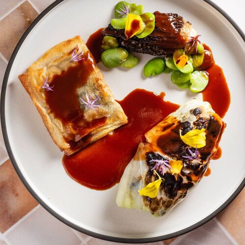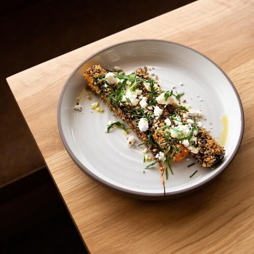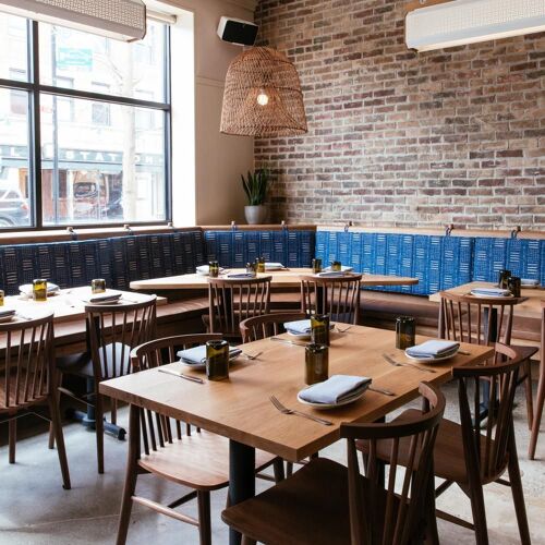 Its exterior is unassuming, but one step inside the hot spot and you'll be smitten by its lively vibe, warm hospitality and seductive aromas. Chef Zach Engel brings his experience to bear on this personal brand of modern Middle Eastern cuisine. His prix-fixe allows diners to make their own selections from a range of options. A generous first course kicks things off: Creamy hummus with brisket and salatim (spreads and pickles) accompanied by just-cooked, flame-kissed pita. Even familiar favorites like crackling-crisp falafel with mango labneh offer surprising depth. The team’s impressive intentionality extends to its beverage program, as esoteric wines from Armenia, Lebanon, Palestine, and Israel tell their own stories and make for beautiful pairings.