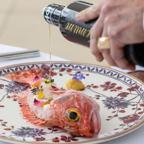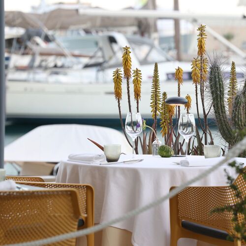 Located well away from the busy city centre and overlooking the luxury yachts and boats moored in the harbour, this restaurant opened in the summer of 2021, at the same time as the modern Cala del Forte marina in which it is situated (the name of the marina comes from the Forte dell'Annunziata, the ruins of which are visible from the side facing the sea). Fish and seafood take pride of place here (especially raw fish dishes), served with classic, seasonal accompaniments, as well as snacks, while an oyster bar is an added attraction. Although the best tables are in the glass-fronted veranda overlooking the pedestrian promenade, the contemporary-style dining room is also attractive. The owner-chef has plenty of experience behind him, especially working in the region.