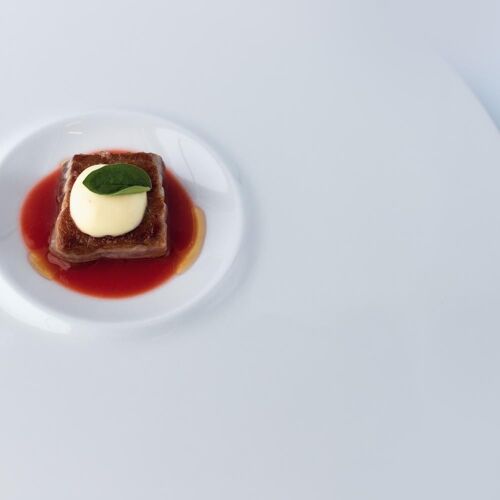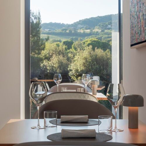 This building with a minimalist, contemporary design is situated on the edge of the historic centre at the Sant'Erasmo belvedere, from where, in summer, panoramic views extend over Monte Conero and the sea (booking ahead is recommended). In the kitchen, owner-chef Davide Breccia conjures up creative dishes featuring original combinations and mainly inspired by the sea. There are two tasting menus, Iconico and Idee, for guests who like to be guided, plus an à la carte for those who prefer to choose their own courses.