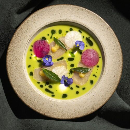 Frevo is that rare restaurant that flies just under the radar but deserves to be in the spotlight, as Chef Franco Sampogna and his team have serious resumes. It's a tasting menu-only spot that doubles as a gallery; in fact, even the entrance is as artistic as the canvases lining its walls. There are just 18 counter seats and a small table here where the crew plates contemporary French dishes. Begin with bites like Japanese mackerel with shiso leaf and smoked trout roe in a crispy nori shell, or a butternut squash doughnut, served warm and topped with black truffle and parmesan. Madai grilled over binchotan gives the dense, silken fish a gorgeously crisped skin, while thinly shaved Comte cheese, aged 36-months, is paired with honey ice cream for a delightful contrast of savory and sweet.