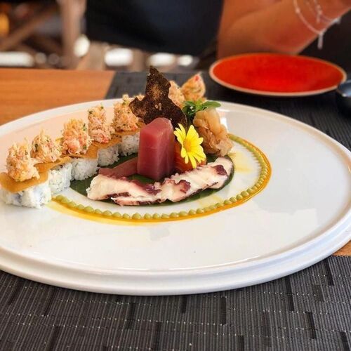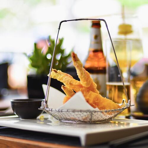 After climbing just over ten steps, you settle comfortably into this delightful restaurant with relaxing colors and a splendid view of the lake and mountains. Of course, when the weather is nice, the terrace is the best place to book: your gaze drifts off over the vast blue expanse, while bamboo plants brighten up the outdoor area. The kitchen offers all the great Asian classics: traditional or fusion sushi, sashimi, delicious Thai curries, dim sum, and much more. Choosing won’t be easy!