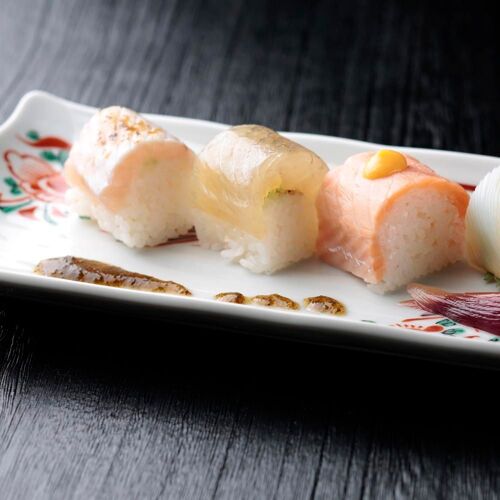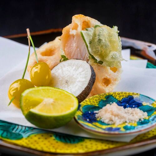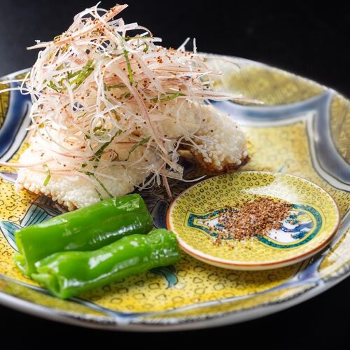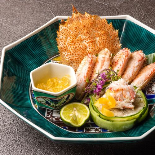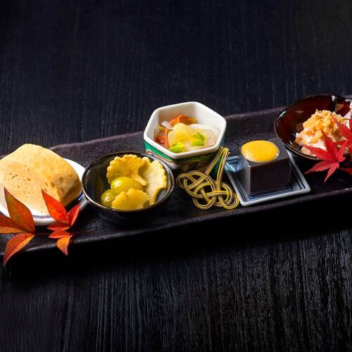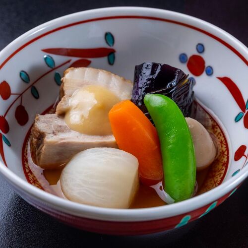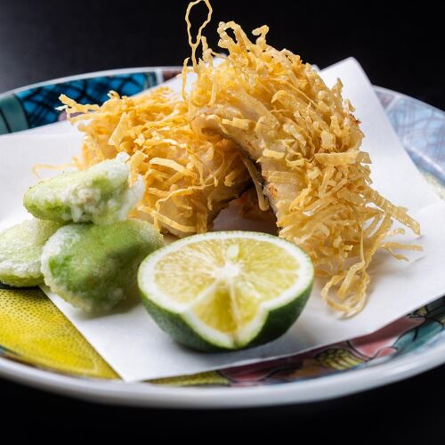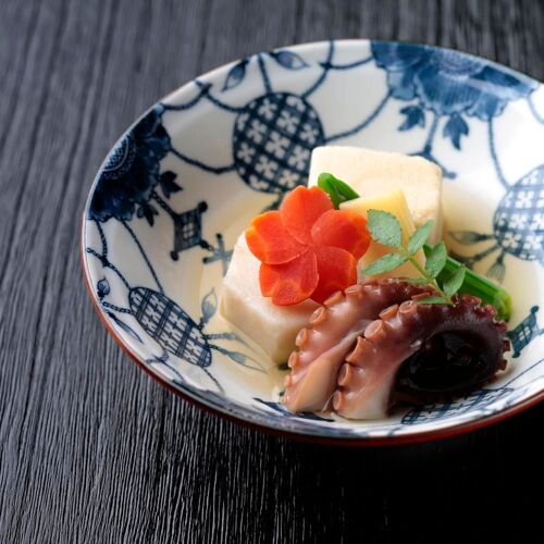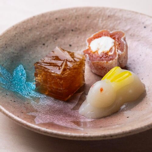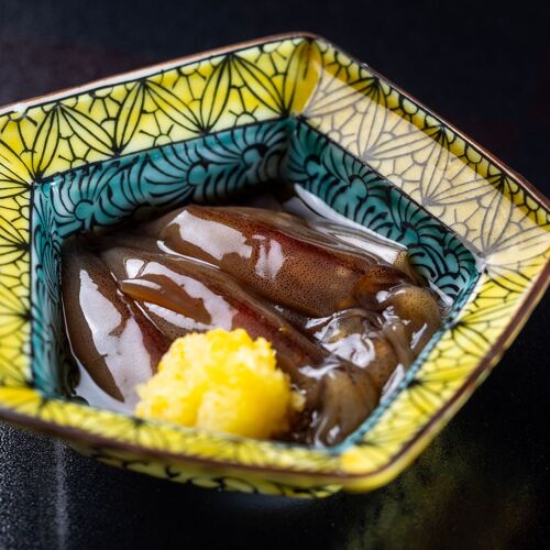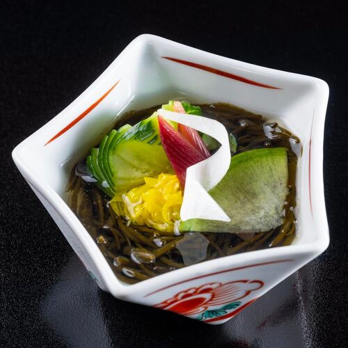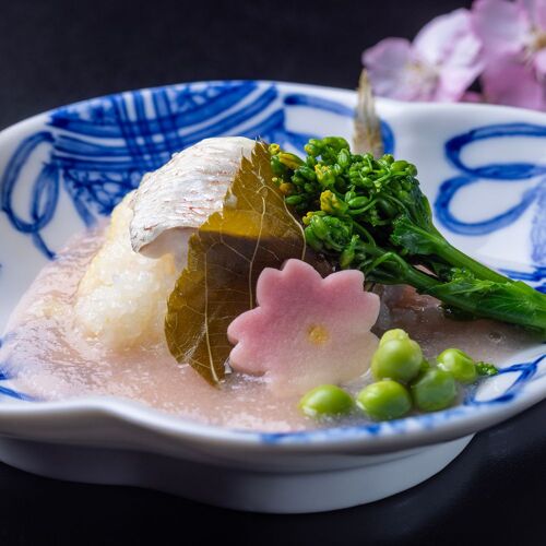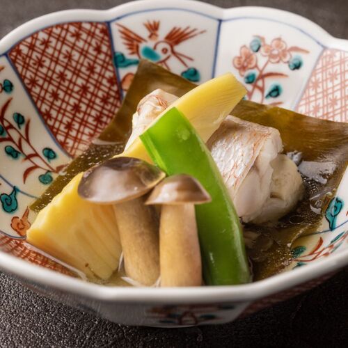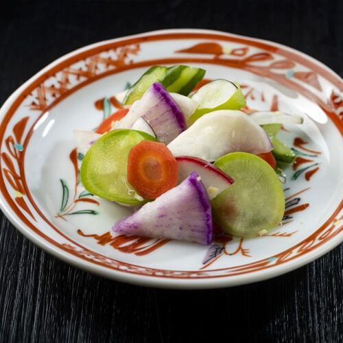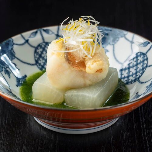 The couple in charge of this restaurant want to tell the world about the wealth of food from Ishikawa Prefecture. Fish arriving from Nanao, the proprietress’ place of birth, is prepared by her husband, the owner-chef. In addition to vinegared mozuku seaweed and rosy sea perch cooked whole, the restaurant serves mountain treats such as vegetables from Kaga and edible wild plants from the Noto Peninsula. The couple tour farms and sake breweries, building warm relations with producers.