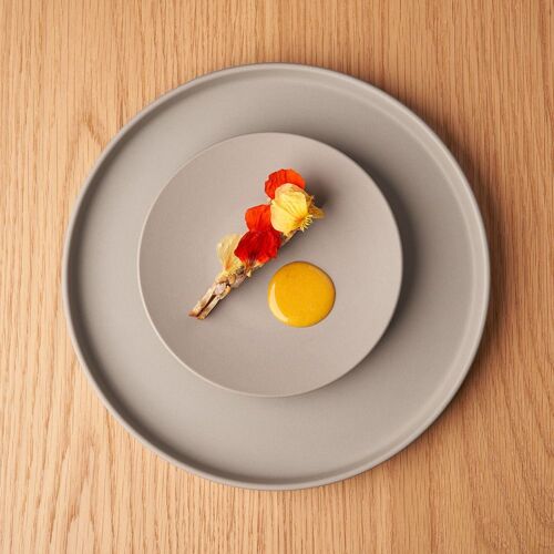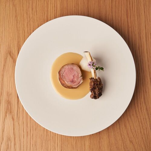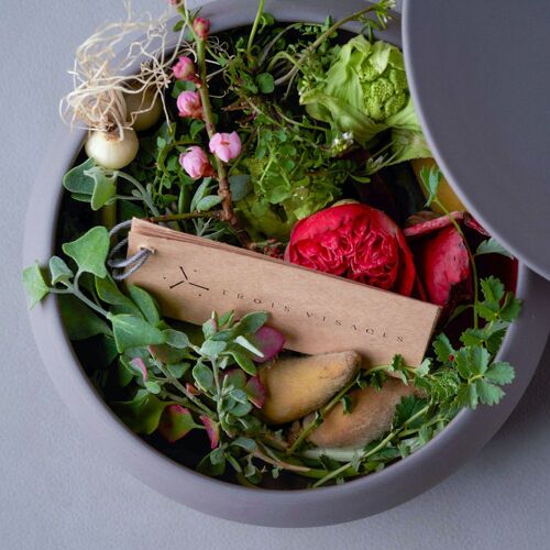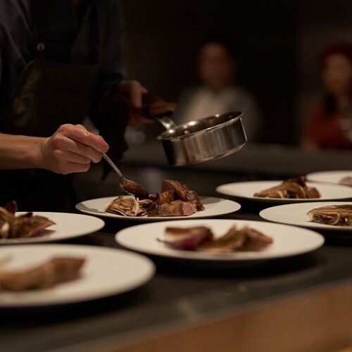 The menu card is designed like vocabulary flip cards, inviting guests to flip through the pages with growing anticipation. The enoki mushroom sausage was born from an encounter with a passionate producer, while the consommé, made from spent hens, embodies a deep respect for ingredients. The restaurant’s name means ‘Three Faces’, reflecting the interconnected roles of producers, guests, and staff. Their shared story unfolds through each course.