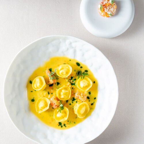 Inside the modern Badia Hill hotel, patron Marco Verginer offers two tasting menus: one focused on seasonality, the other inspired by his creativity, featuring ingredients such as Wagyu beef produced in Alto Adige. The pairings are flavorful and lively, with extensive use of vegetables, often from the home garden. The result is an excellent dining experience served in a contemporary setting surrounded by glass walls that offer splendid views of the surrounding landscape. The menu presents a succession of mountain territory references combined with Mediterranean and international touches in highly elaborate dishes.