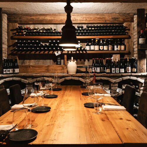 In the cellars of the Ciasa Salares hotel, you dine surrounded by bottles – after all, cocun in Ladin means cork, and not by chance the wine selection is vast. The chef creates dishes with ingredients and influences from every corner of the world and makes frequent use of the grill.