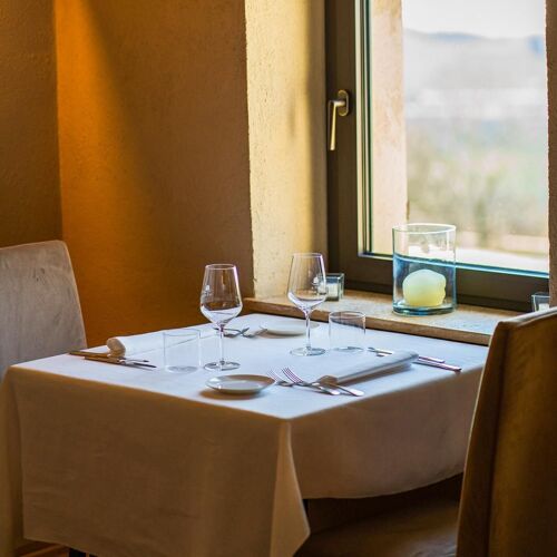 Situated within the La Collina dei Ciliegi wine estate amid the verdant Valpantena hills, this first-floor restaurant (lift available) is home to two chefs – he is from Calabria, while she is from Puglia. Together they create exciting, modern Mediterranean cuisine using ingredients from their native regions, including their signature dish – homemade spaghetti served with a delicious, well-balanced 'nduja, smoked ricotta and tomato ristretto sauce. Top-quality local ingredients take pride of place, as demonstrated by the Brogna mutton, which is raised on site, barbecued and served with an exquisite caper sauce and seasonal mushroom pie. The concise wine list features labels from the Veneto alongside a few French options.