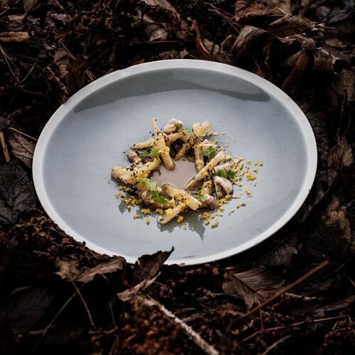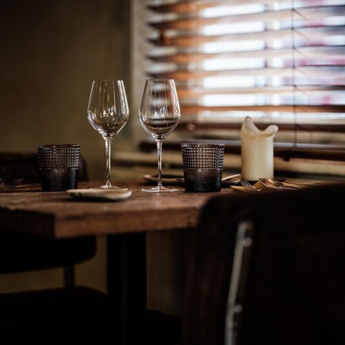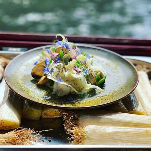 The initial impression of romanticism conjured up by the historic edifice in which Bruut is located, quickly gives way to a pared-down, almost brutal interior that is emblematic of its colourful, rock ‘n roll chef, Bruno Timperman. He crafts a single surprise menu that elegantly showcases his unconventional streak and technical ingenuity. He may pair the breast and thighs of slow-cooked partridge in a winter recipe with cèpes, a gutsy jus of the carcass, thyme, marinated pine buds and capers marinated in garlic. “When food meets wine” is the baseline…