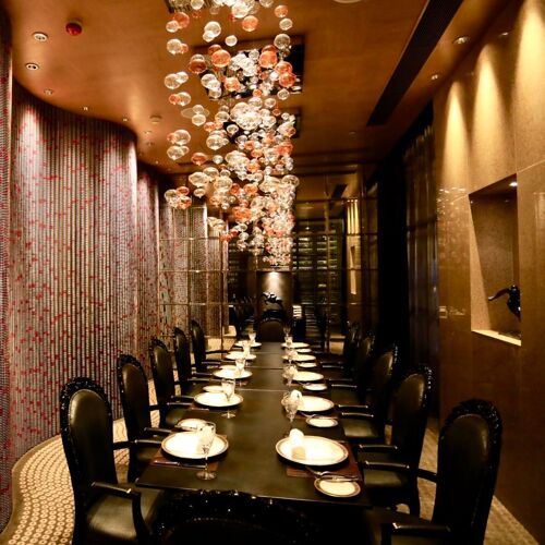 融匯西式扒房、日式壽司吧及海鮮魚缸於一室,餐廳裝潢亦別樹一格。廚師會在開放式廚房即席製作麵包和各款頭盤,確保提供最新鮮的美食佳餚予食客。來自美國、澳洲及日本等地的頂級牛肉放於肉櫃內供挑選,食客可選取不同部位與分量,亦可從魚缸中點選新鮮海產。酒單備有逾萬款來自世界各地的名酒佳釀。