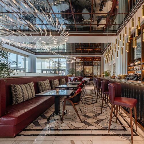 Creating a little piece of France in Sofitel Dubai The Obelisk is this classically styled brasserie deluxe with its marble flooring, red leather banquettes and art deco touches. In a spacious setting inspired by acclaimed chef Daniel Boulud, the restaurant’s appealing menu offers all the French classics from escargots and canard rôti to tarte Tatin and île flottante. It also has a good value business lunch.