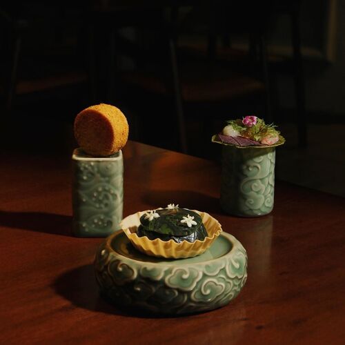 Gia đình, meaning "family", is a reference to chef Sam Tran and partner Long Tran's longing for their homeland during their years working abroad. The restaurant decor draws inspiration from the Temple of Literature just across the road. Their 12-course set menu changes with the seasons and is informed by Vietnamese culinary heritage. Deceptively complex, the beautifully crafted dishes showcase well-judged combinations of subtle flavours, with acidity and texture playing prominent roles.