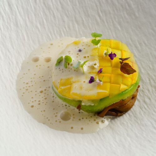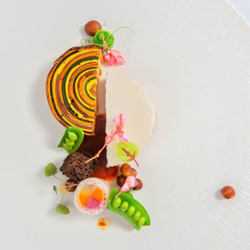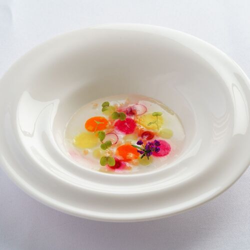 環境簡潔雅致,即使是開放式廚房的配置,用餐區也絲毫不受油煙干擾。主廚擁有豐富的傳統中餐經驗,也擅於將現代烹飪手法融合其中。僅提供素食套餐,菜單貼心標示含有蛋奶製品的菜式。螺絲卷饅頭一蒸一炸,可嘗到不同口感,配搭欖菜泡沫醬,味道鮮美。松茸清湯中放有一朵菊花豆腐,刀工細緻,足見功架。