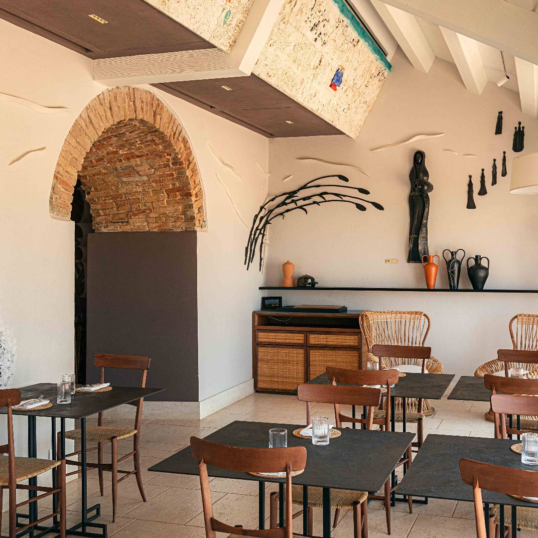 It’s almost hard to believe that Le Dune Piscinas began life as a humble warehouse for mining materials, or that the golden dunes that surround it hide the remains of a 19th-century mine. After a radical transformation the property has been reborn as a luxuriously soothing retreat, which feels far from everything except the beach and the blue waters of the Mediterranean. The 28 rooms look across the dunes and the sea—you can even hear the waves at night—and some come with balconies and terraces to place guests even closer to the sands. Interiors nod to traditional Sardinian design, note the tonal bas relief walls and cast-iron beds, as well as the building’s mining history, with Orosei marble bathroom floors sourced from nearby quarries.