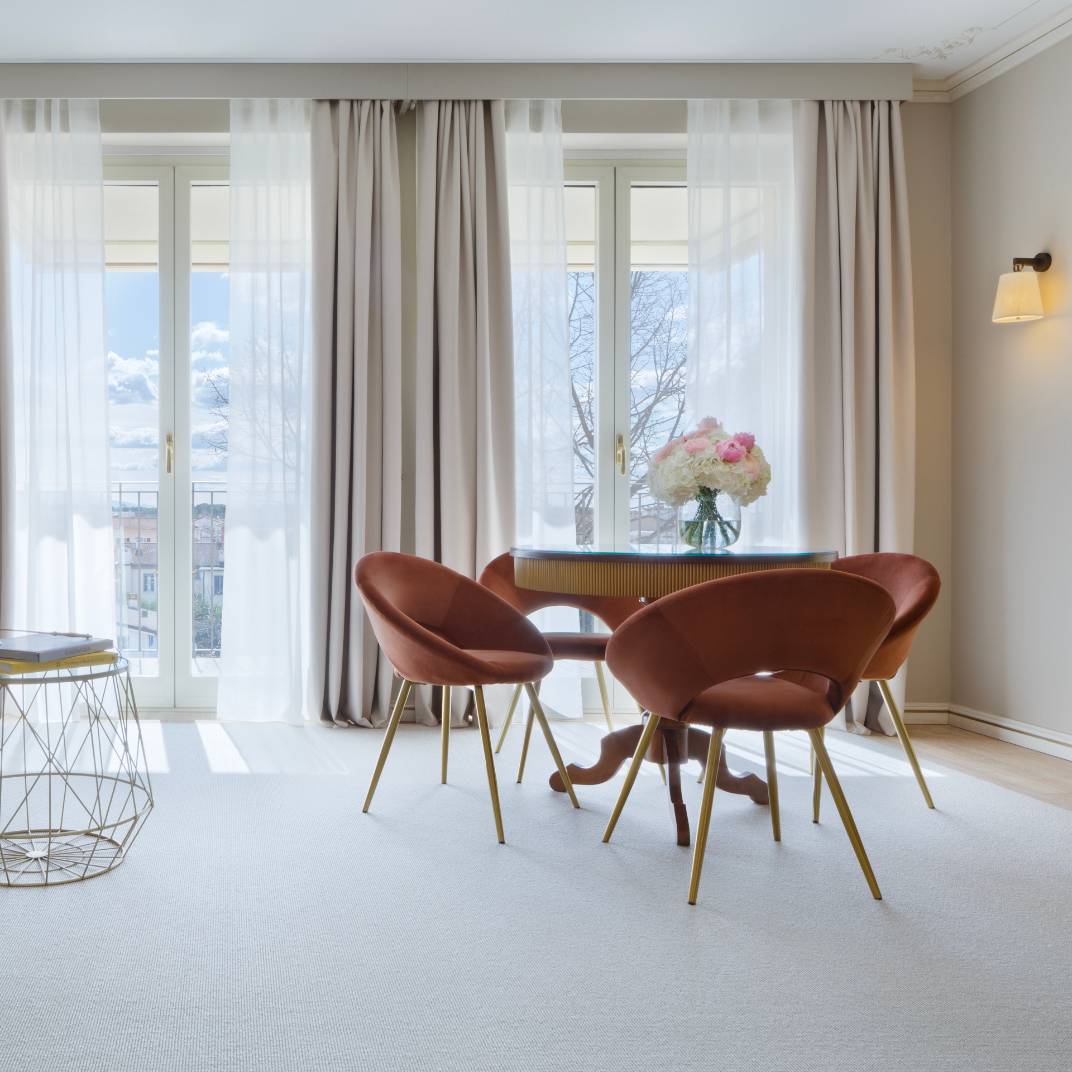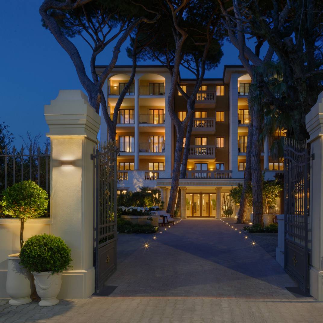 The town of Forte dei Marmi sits along a gorgeous stretch of Tuscan coastline, so it’s reasonable to expect a luxury hotel that owns a private slice of that beach to be somewhat beachy and sun-drenched in aspect. Grand Hotel Imperiale’s setting in the center of a decidedly non-sandy pinewood, 200 meters inland, defies this expectation. The result is a hotel that, despite its coastal setting, is less about flip-flops and beach towels and more about the sort of classic elegance that seems to come so naturally to Italians.