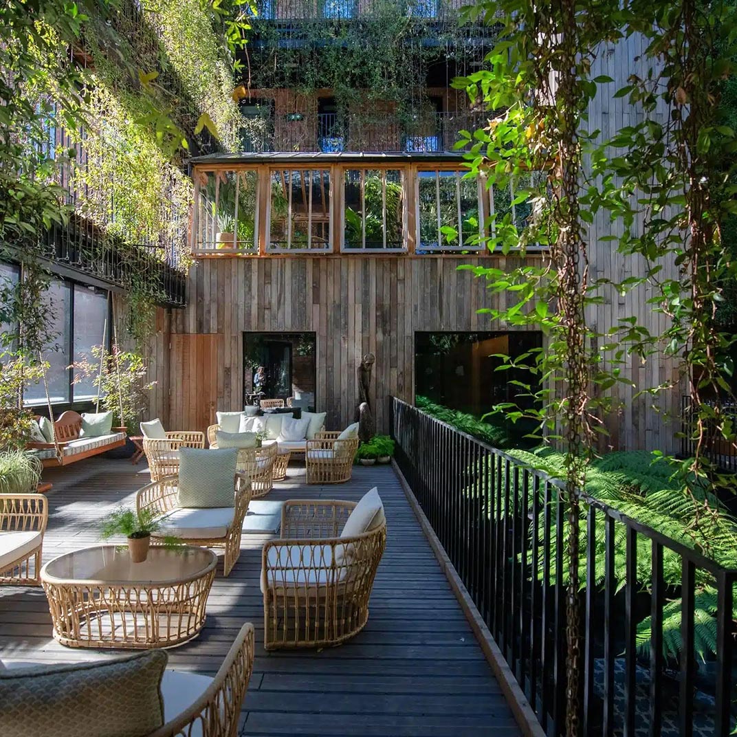 Some of London’s luxury boutique hotels are so tasteful they’re almost invisible, catering to guests who want a blank canvas on which to project their own personalities. And then there’s the Mandrake. Set in a relatively sleepy section of Fitzrovia, it’s nevertheless nothing short of a fantasy world, a moody, atmospheric 33-room boutique hotel surrounding a central courtyard full of hanging jasmine and passionflower.