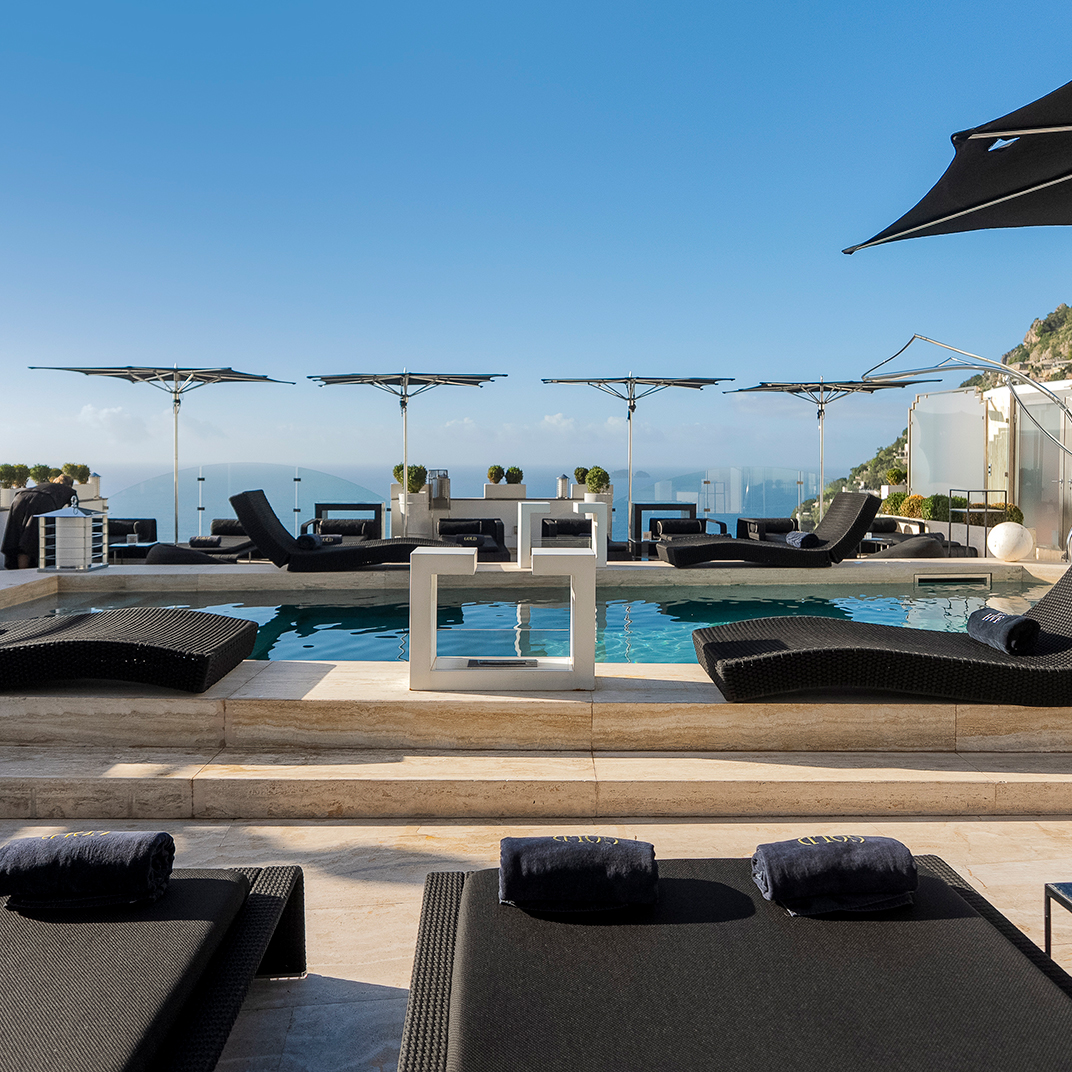 Like every other building in the heart of old Positano, the villa is built right into the steep cliffside: if you think of the town as a giant amphitheater with a sea for a stage, Hotel Villa Franca Positano would be on the first or second tier of balcony seating. And while there’s hardly a bad location in a landscape as stunning as this one, the five-story villa has a particularly enviable address that affords spectacular views over the water — a view shared by Li Galli, the hotel’s gastronomic restaurant.
